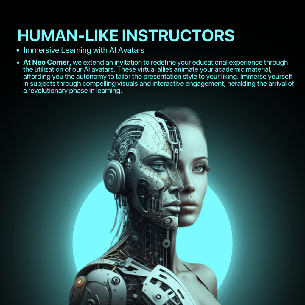 At Neo Comer, we offer a diverse range of courses designed to cater to the evolving needs of learners in any knowledge. Our courses span across various domains, leveraging cutting-edge technology and artificial intelligence to provide an immersive and personalized learning experience.